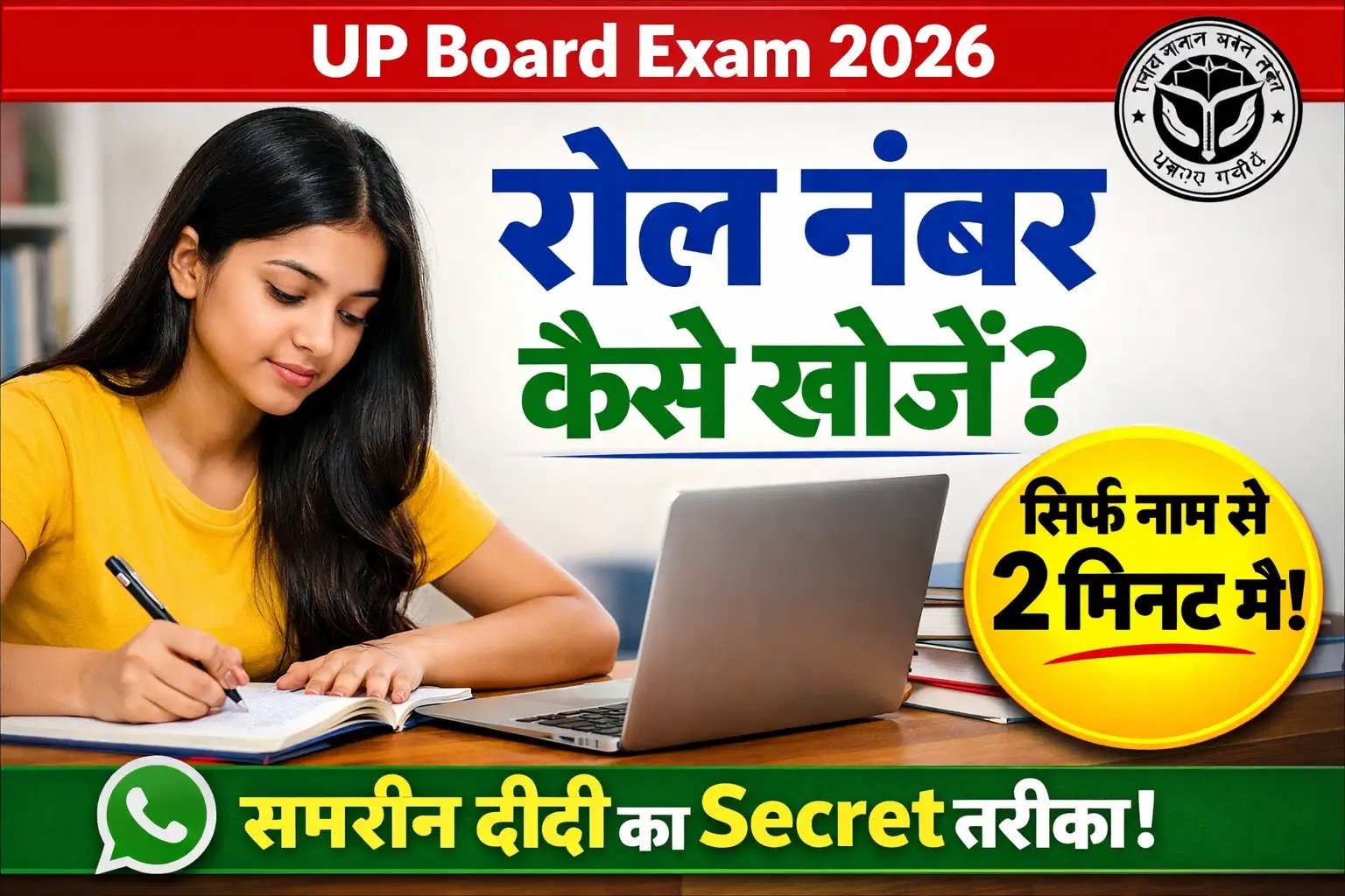 यूपी बोर्ड परीक्षा 2026 में शामिल होने वाले 52 लाख से अधिक छात्र-छात्राओं के लिए सबसे बड़ी अपडेट आ चुकी है। क्या आपको भी अपना रोल नंबर (अनुक्रमांक) अभी तक नहीं पता चला? घबराइए मत! अब आपको स्कूल के चक्कर काटने की जरूरत नहीं है। आप सिर्फ 2 सेकंड में अपने नाम (Name) की मदद … Read more