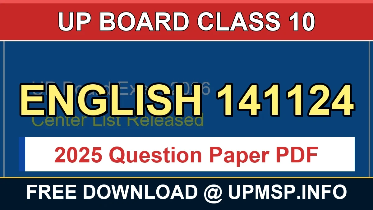 उत्तर प्रदेश माध्यमिक शिक्षा परिषद की कक्षा 10 में English विषय का पेपर 141124 कोड के साथ 2025 में आयोजित किया गया था। यह पेपर अपनी Comprehensive Nature और Balanced Approach के लिए जाना जाता है। Grammar, Literature और Writing Skills तीनों पहलुओं को समान महत्व देते हुए यह पेपर छात्रों की English Proficiency को हर कोण से परखता है।
